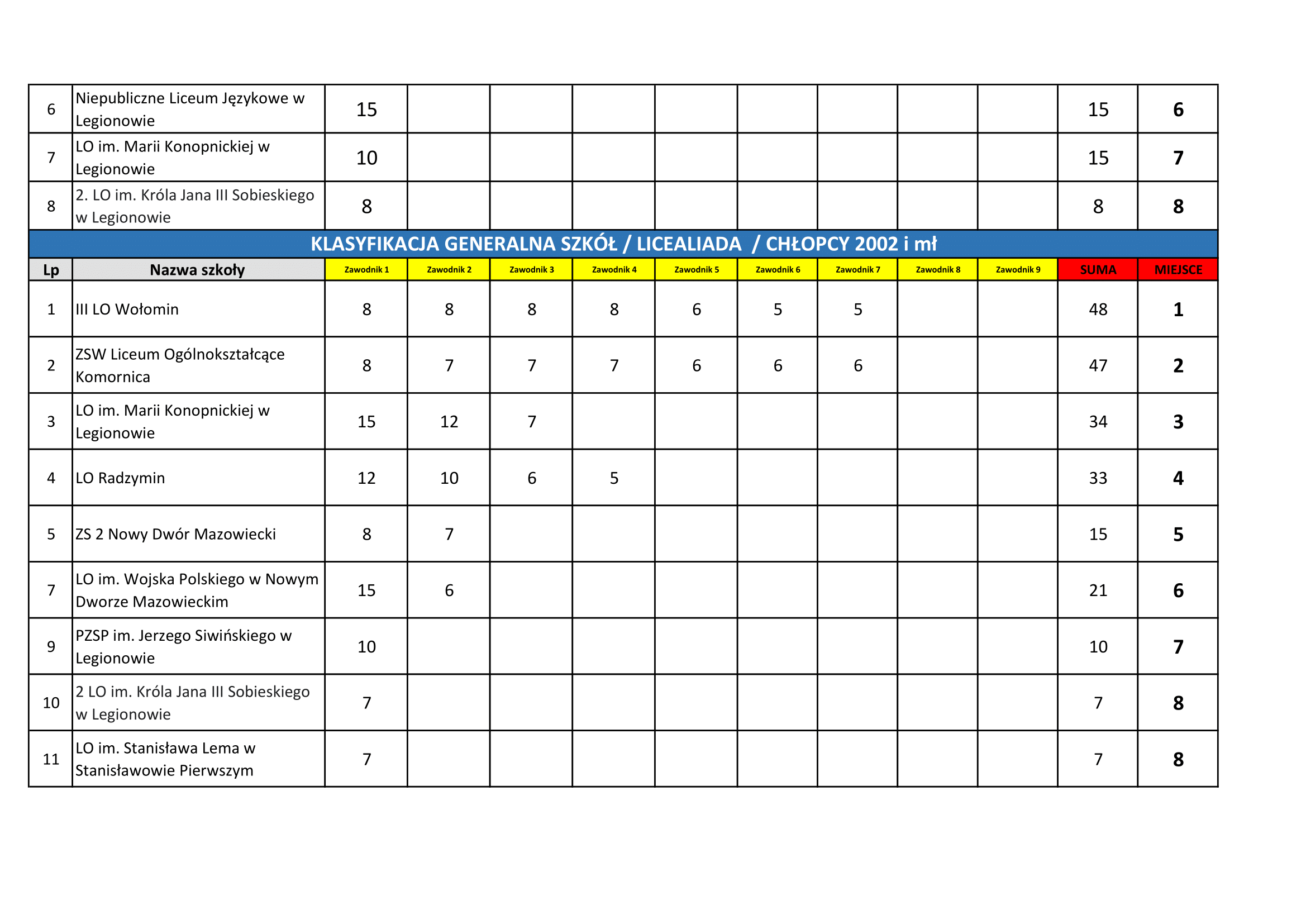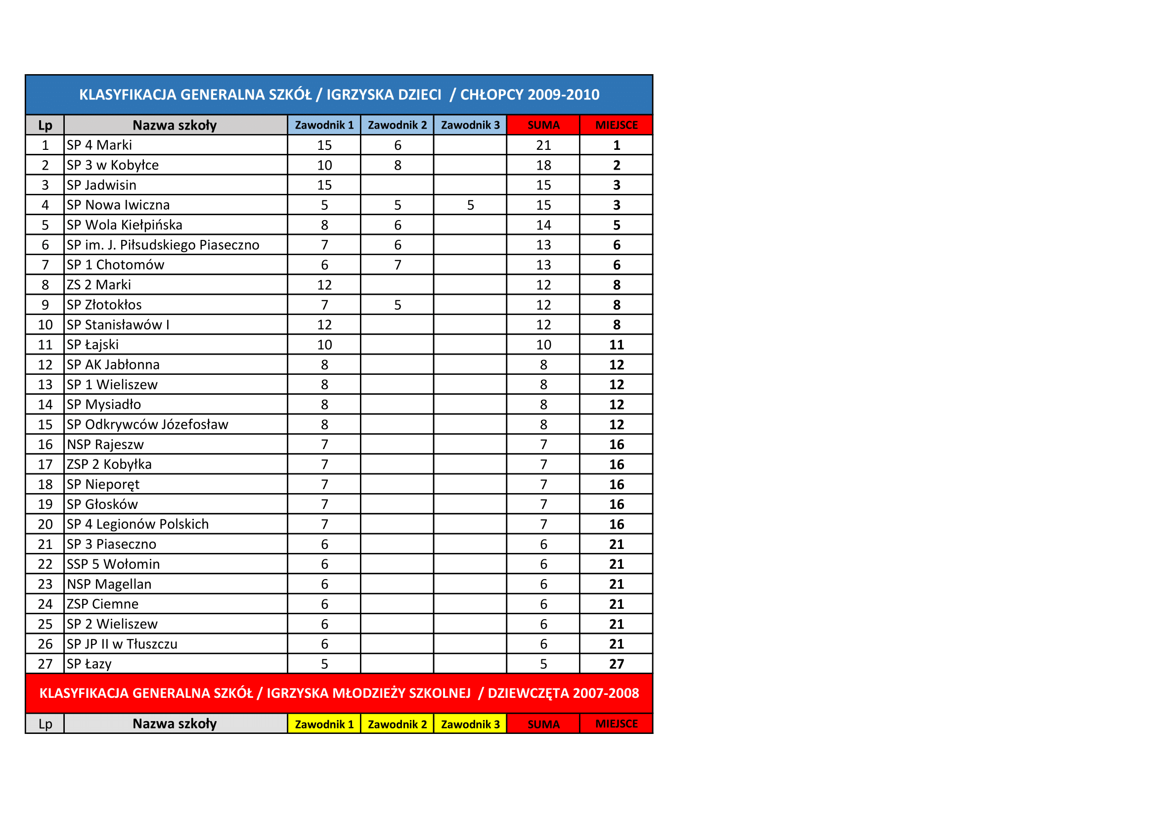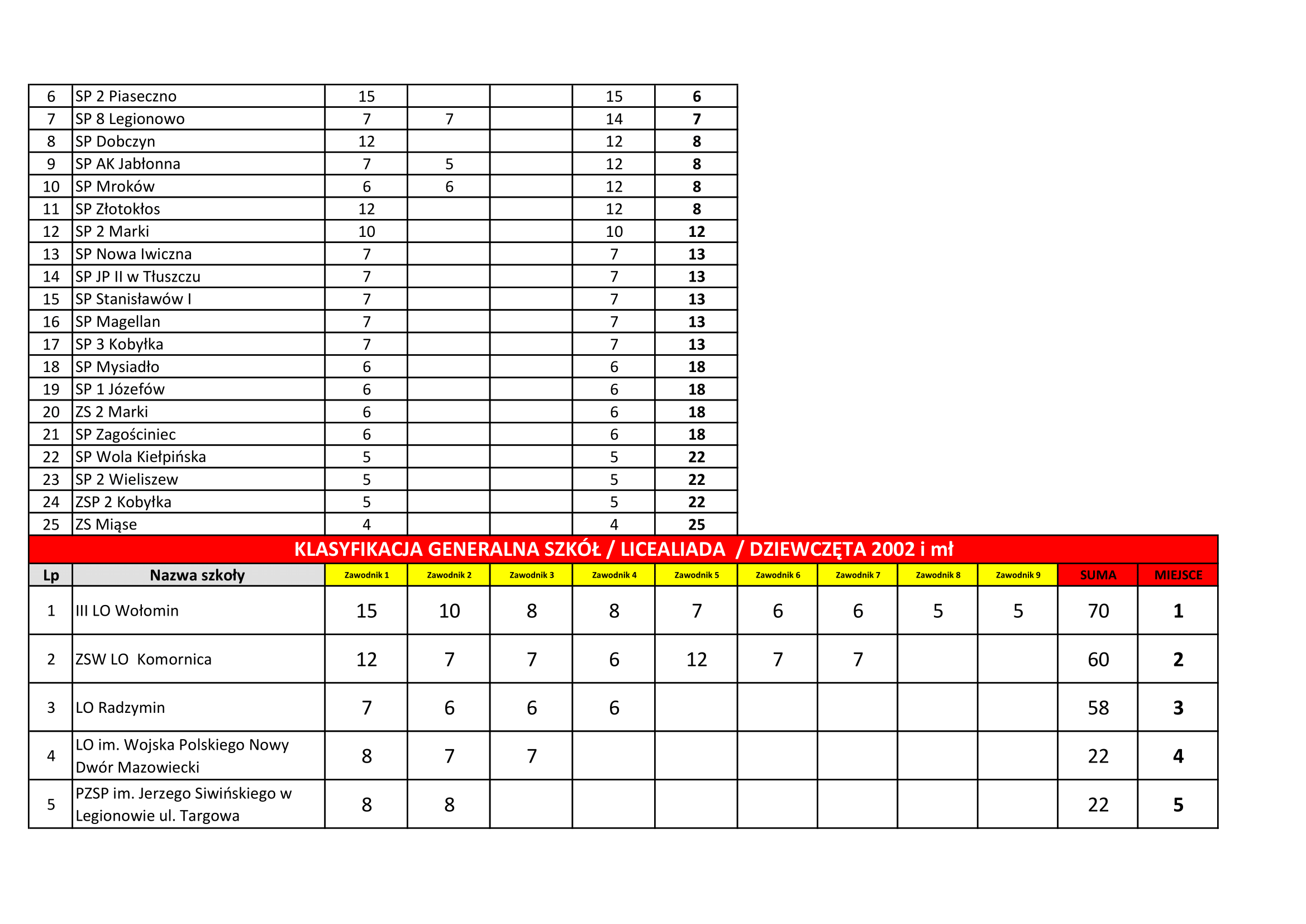 Klasyfikacja współzawodnictwa sportowego szkół Powiatu Wołomińskiego w roku szkolnym 2021/2022 kategoria DZIECI – plik pdf kategoria MŁODZIEŻ – plik pdf kategoria LICEALIADA MIEJSCE SZKOŁA PUNKTY 1 III LO Wołomin 110 2 […]