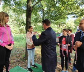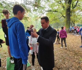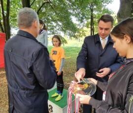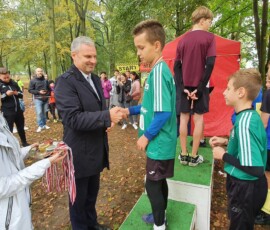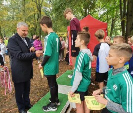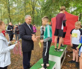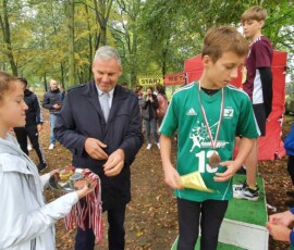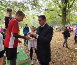 Po zakończonej rywalizacji w biegach w kategorii dzieci, odbyła się dekoracja najlepszych trzech drużyn. Medale wręczali Burmistrz Miasta Zielonka Pan Kamil Iwandowski oraz Zasępca Burmistrza Pan Robert Pomorski.