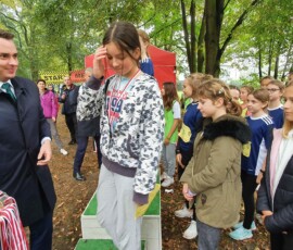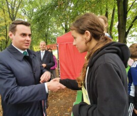 Podobnie, jak w grupie młodszej po zakończonych biegach odbyła się dekoracja najlepszych sztafet. Ponownie najlepsze szkoły uhonorowali Burmistrz Pan Kamil Iwandowski i Zastępca Burmistrza Pan Robert Pomorski.