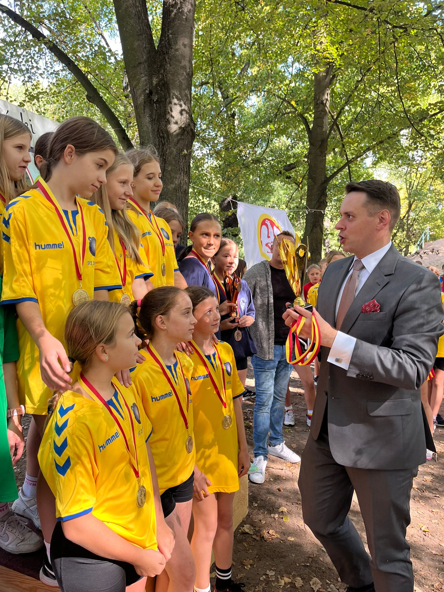 Po zakończeniu kategorii „Dzieci” oraz „Młodzież” odbyły się dekoracje najlepszych drużyn. Medale i puchary wręczyli Pan Burmistrz Miasta Zielonka, Kamil Iwandowski oraz Radny Miasta Zielonka, Tomasz Wołujewicz.