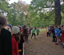 W piątek 23.09.2022 r. w Parku Dębinki w Zielonce odbyły się finały Powiatowych Igrzysk Dzieci i Młodzieży Szkolnej w sztafetowych biegach przełajowych. Do rywalizacji zgłosiło się 25 drużyn sztafetowych z 10 szkół powiatu wołomińskiego. Każda sztafeta liczyła 10 osób. Jako pierwsze do rywalizacji przystąpiły dziewczęta młodsze rocznik 2010/2011. Na starcie stanęło 8 szkół. Rywalizacja od samego początku była bardzo zacięta na zmianę prowadziła szkoła SP2 Ząbki i SP JP II Tłuszcz. Od 6 zmiany do rywalizacji z tymi szkołami dołączyła SP6 Ząbki. Na ostatniej zmianie na prowadzeniu utrzymała się Szkołą Podstawowa nr2 w Ząbkach, tuż za nią ruszyła Szkoła Podstawowa nr6 w Ząbkach, w której w na ostatniej zmianie pobiegła mistrzyni powiatu Lena Duraj, która już po 200 metrach dogoniła koleżankę z SP2 Ząbki i pewnie wyszła na prowadzenie, którego nie oddała już do mety. Również bardzo ciekawa sytuacja była w walce o III miejsce na ostatniej zmianie dziewczęta SP JP II Tłuszcz zostały wyprzedzone przez PSP Poświętne.