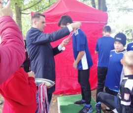Po zakończeniu kategorii ,,Dzieci” jak również po zakończeniu kategorii ,,Młodzież” odbyły się dekoracje najlepszych drużyn. Medale, puchary wręczył Pan Burmistrz Miasta Zielonka Kamil Iwandowski.