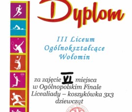 Reprezentacja dziewcząt III LO w Wołominie wywalczyła VI miejsce, natomiast chłopcy ulokowali się na XI pozycji.