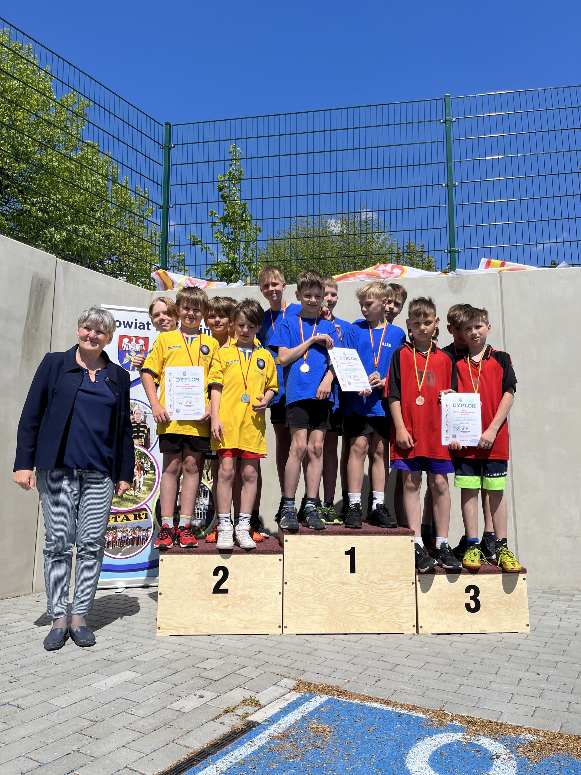 Po zakończeniu rywalizacji najlepsze drużyny otrzymały medale i dyplomy z rąk Pani Małgorzaty Zych -Dyrektor Szkoły Podstawowej nr2 w Zielonce. Również medale otrzymała najlepsza trójka w klasyfikacji indywidualnej.